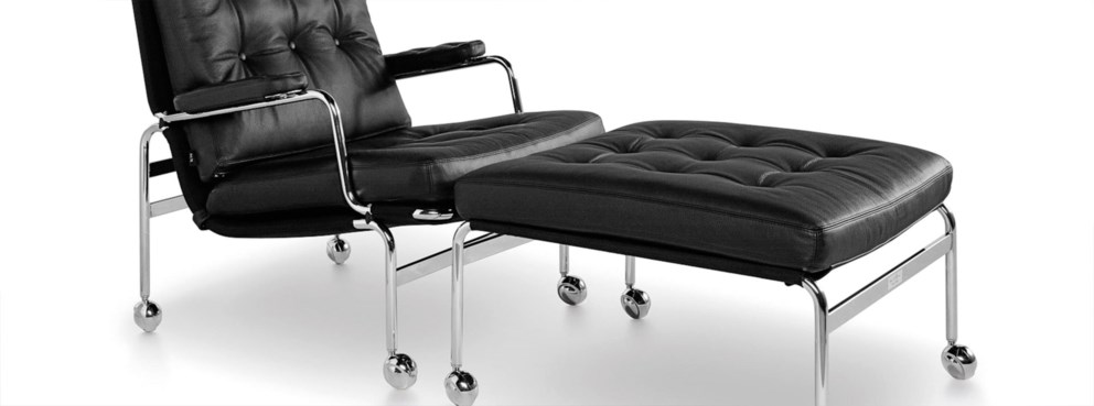 Denne klassiske Karin lenestolen ble designet av Bruno Mathsson i 1969, og var det første møbelet i et vellykket samarbeid som varte i flere tiår. Denne elegante krakken er en viktig del av kolleksjonen og et komfortøkende tilskudd til Karin-stolen – takket være polstrede puter som hviler på en krombelagt ramme med støttende netting.